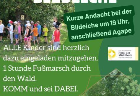 Der gemeinsame Bittgang der Pfarren Eibesthal, Mistelbach und Siebenhirten wurde zum ersten Mal im Rahmen der Kontaktwoche der Erzdiözese Wien im Jahr 2008 durchgeführt. Seitdem pilgern wir – mit wenigen Unterbrechungen – jährlich zur Bildeiche, wo nach einer Marienandacht auch das gemütliche Beisammensein mit Verpflegung lockt.