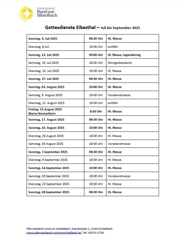 Aktuelle Infos aus der Pfarre Eibesthal.