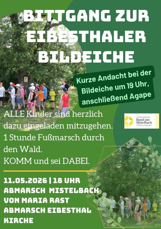 Komm und sei dabei am 11.Mai! 1 Stunde Fußmarsch durch den Wald. Abmarsch um 18:00 Kirche Maria Rast bzw. Pfarrkirche Eibesthal.