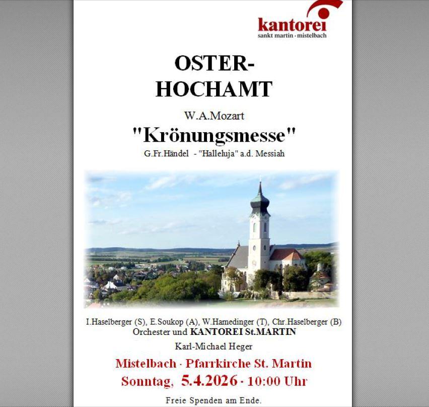 Osterhochamt in der Stadtpfarrkirche Mistelbach – gestaltet vom Orchester und von der Kantorei St. Martin!